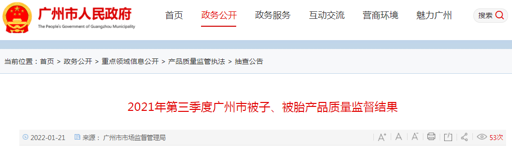 2021年第三季度广州市被子、被胎产品及其企业名单
