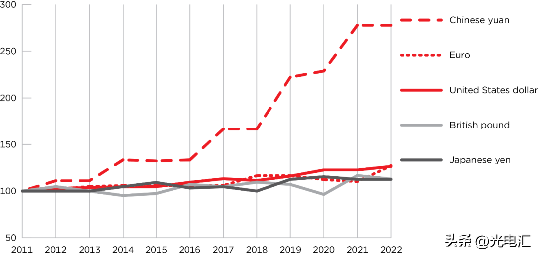 图表8 2011-2022年主要货币组薪资中位数的增长情况