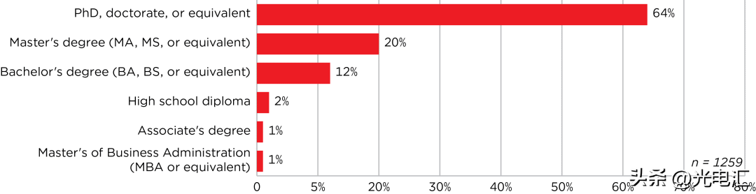 64%的学生受访者正在攻读博士学位,20%的在攻读硕士学位;12%是本科学生。