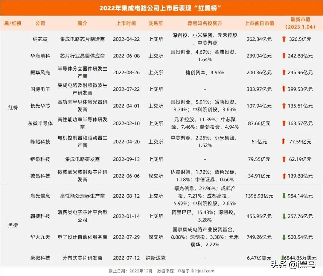 本文从 2022 年上市的独角兽公司、备受关注的集成电路公司以及行业内的明星公司出发,展现这些公司上市后的表现。