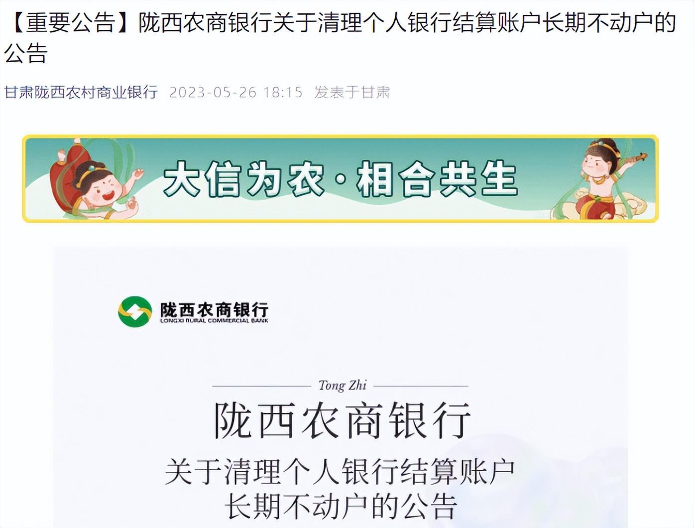 自5月份以来已经先后有兴业银行、中原银行,唐山银行,农佛山农商行,兰州农商行,陆丰农商行,陇西农商行,歙县农商行,贵州农信社,中山农商行等20多家银行发布关于开展个人长期不动户清理的相关公告。