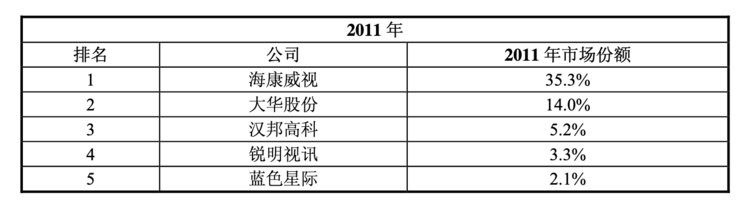 2011年,汉邦高科在中国DVR市场占有率排名第三。