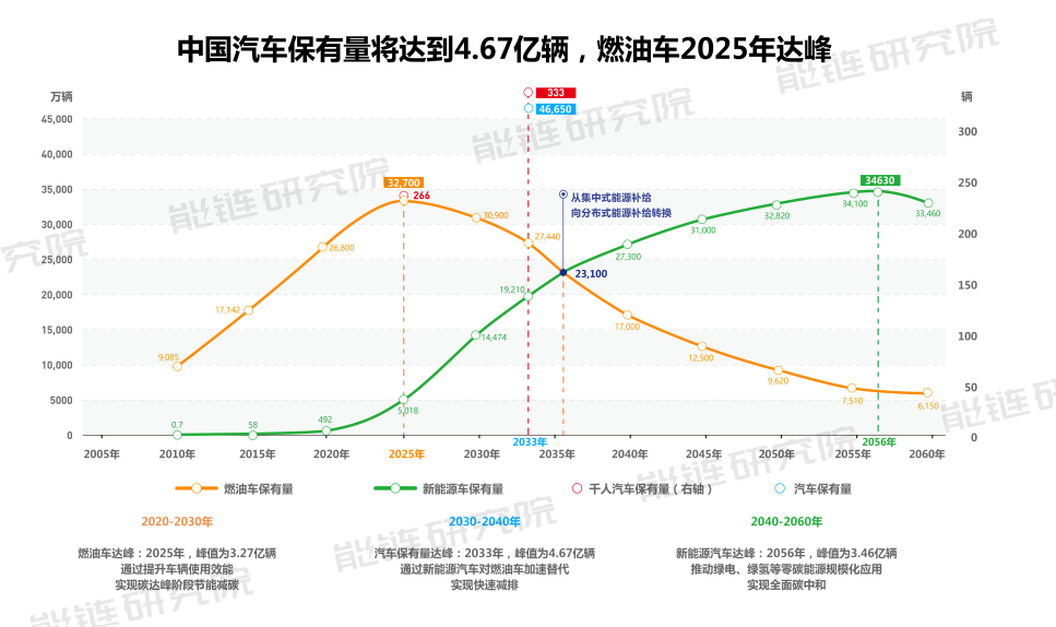 长期看,能链研究院预测,2025年3月,国内燃油车保有量将达到峰值,最高为3.27亿辆,而后一路掉头向下。