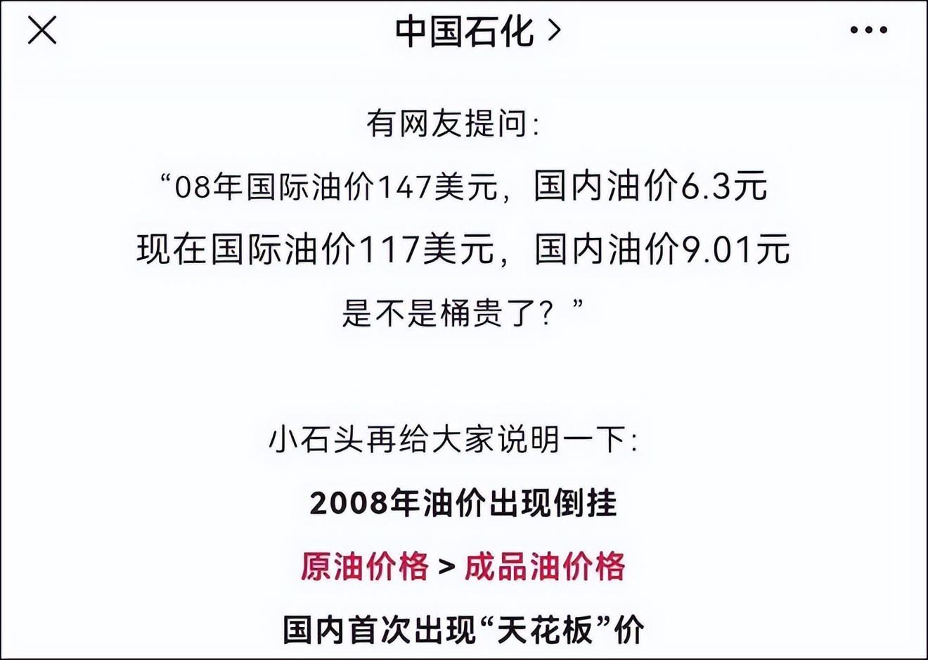 92号破9元,95号破10元。中国车主们似乎从未用过如此昂贵的汽油。所以吐槽声不断,虽然大家依然不得不开车。近期,有网友挖出了一篇中石化发布的文章,文章对“为什么国际原油越便宜,国内油价越高”做出了解释。