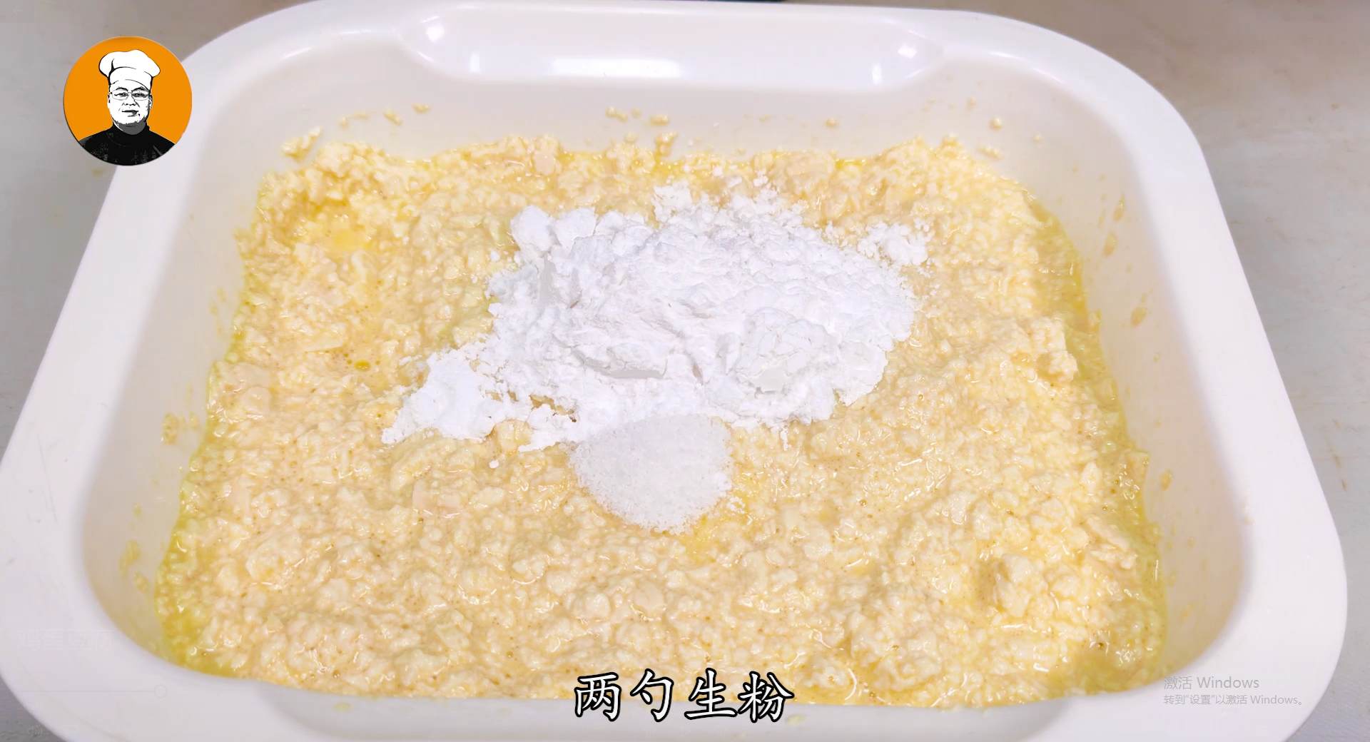 鸡蛋、豆腐、青红椒、葱末、生粉