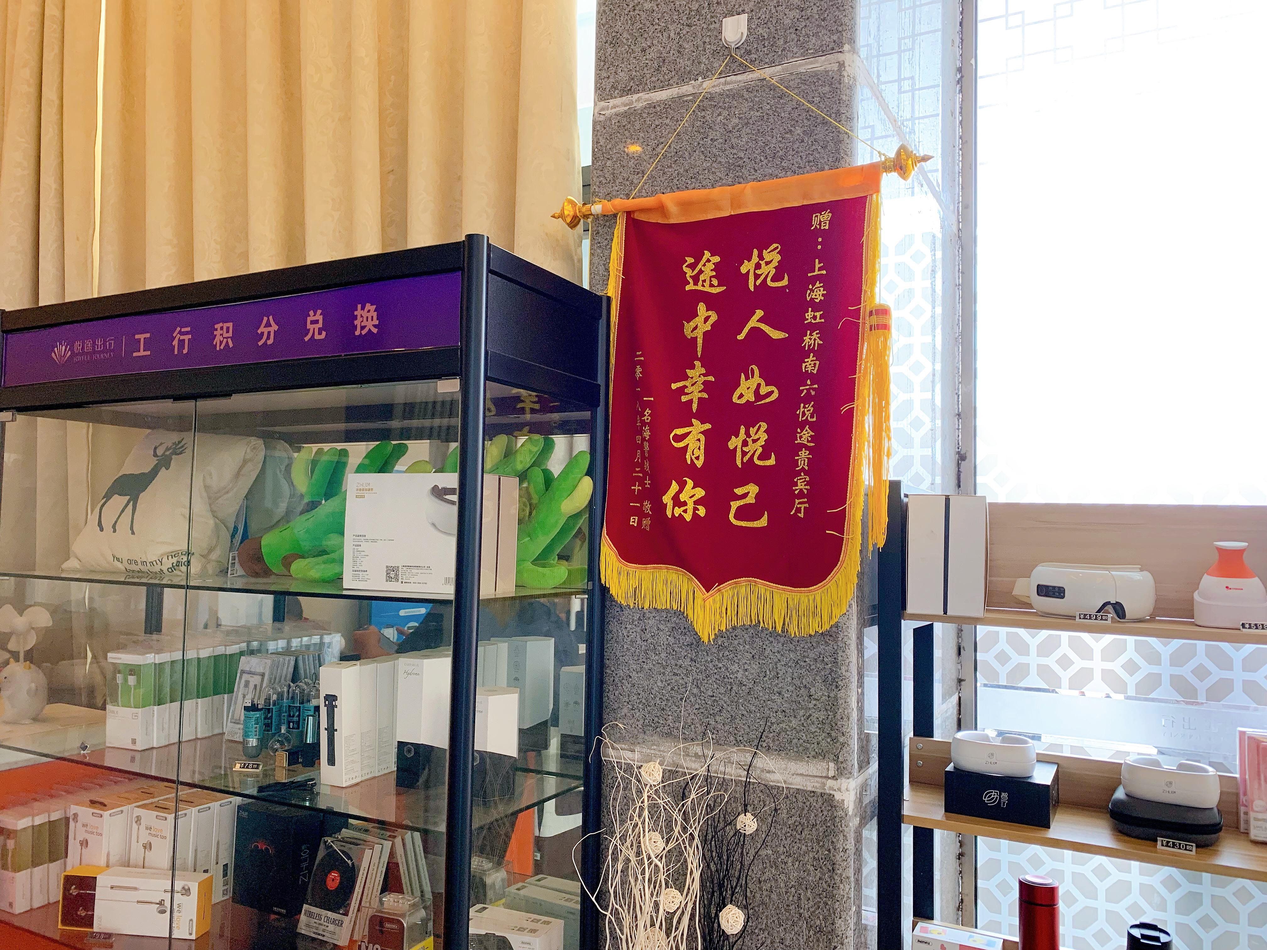 旅途周边商品还挺多,最显眼的还是这面锦旗。毕竟是花了钱的休息厅,把东西落在这里,工作人员应该也会帮你收起来。