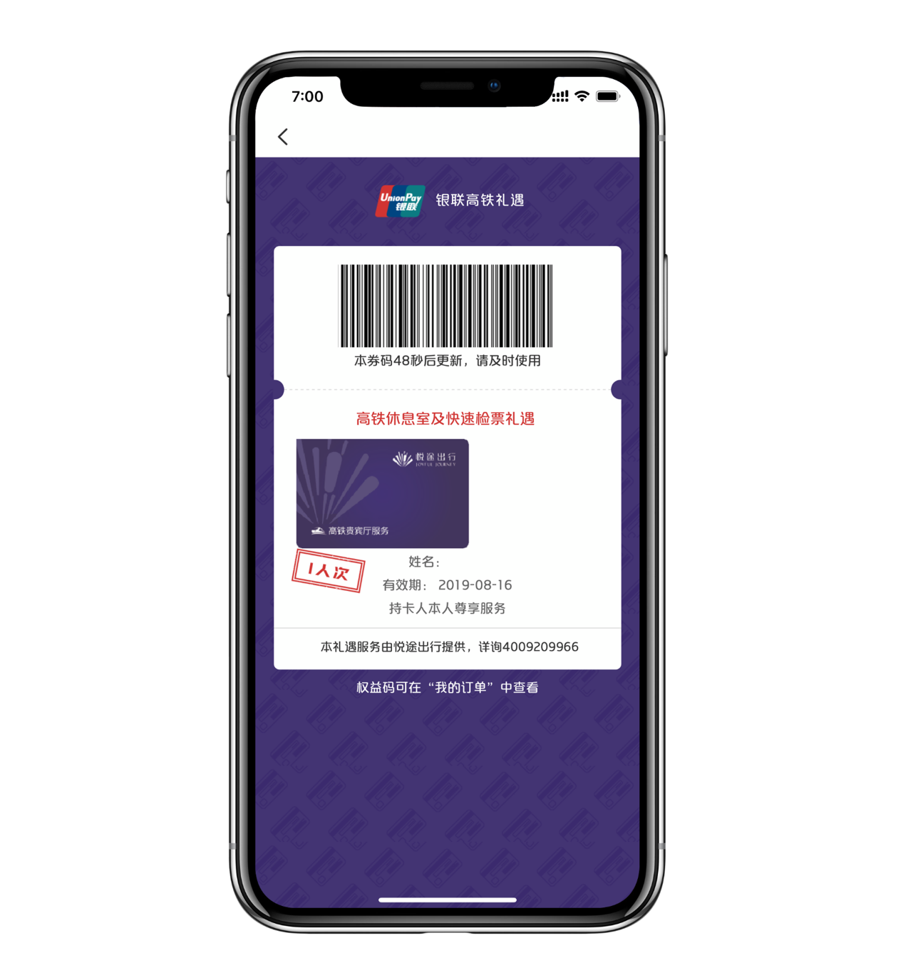 权益使用简单。进去之后和服务员说用银联权益,把手机号报一下,核对一下车票,连码都没扫就能进休息厅了。简单地体验了一下,主要感受如下: