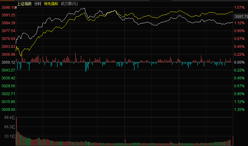 截至收盘,沪指大涨35.08点,涨幅1.15%,收于3085.20点,盘中直接上摸3100点整数关口,最高涨至3098.10点。两市总共成交超过7500亿元,助推大盘实现“开门红”。