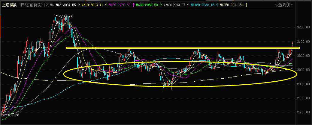 “每经牛眼”认为:综合消息面和政策面来看,沪指短线向上的走势有大概率已经确定,下方的3000点以及今日的向上跳空缺口将成为强大的支撑。短期沪指有可能震荡回探缺口上沿确认有效支撑,然后向上展开攻击,春季的第一目标应该是去年的年内高点3288点。