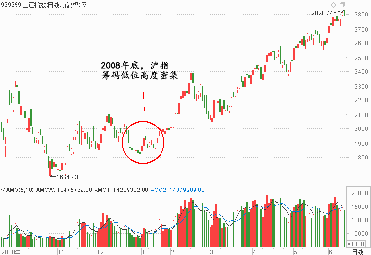 图上可以看得很清楚,在去年4月8日沪指盘中创出年内高点3288点之后回落,于5月6日跳空向下,失守3000点关口并且留下一个60多点的大缺口,从而开始了长达8个月的横盘震荡调整,调整区间大致在2820~3040点。