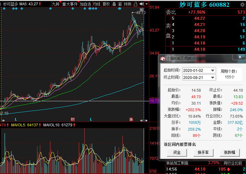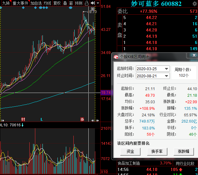 作为A股“奶酪第一股”,妙可蓝多近年来可谓风头正盛,尤其是今年年初蒙牛集团受让5%股权,乳业“强强联手”令其股价今年以来涨幅超200%。今年3月,蒙牛集团拟通过妙可蓝多的非公开发行进一步增持股份,更是令其股价翻倍,一度逼近50元关口。