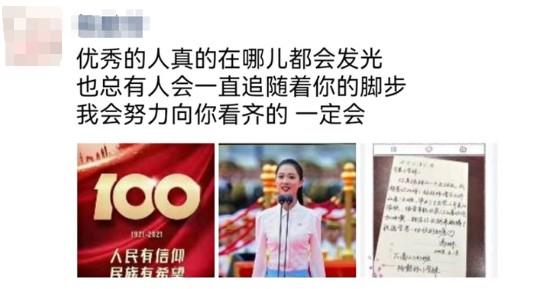 这次能在庆祝中国共产党成立100周年大会的直播中看到冯琳,黄欣媛也很意外。