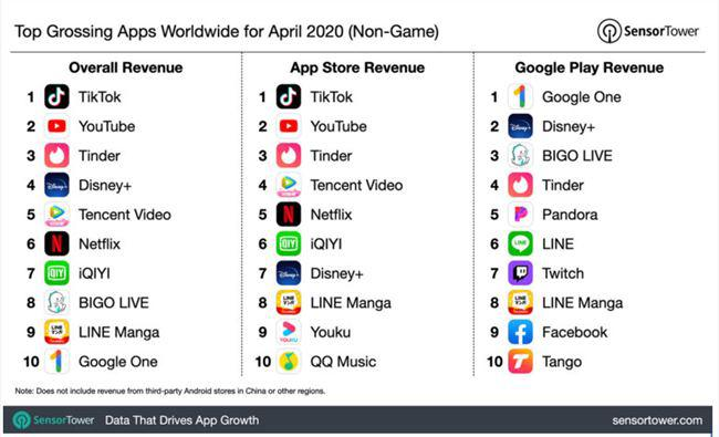 这一点,从TensorTower最新报告也可以看出,海外大热的社交媒体应用TikTok已经正式突破了20亿次的下载量,数据包括iOS和Android系统,这个里程碑的达成是在该应用创下15亿次下载量后仅5个月后。2020年4月抖音及海外版TikTok在全球App Store和GooglePlay吸金超过7800万美元(约合5.6亿人民币),较去年4月增长10倍,位列全球移动应用收入榜冠军。