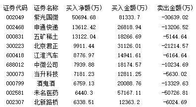 表一、本周主力净买入最大十股