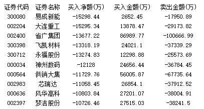 从表二主力卖出净额前列的个股来看,本周主力总体的抛压力度也不小,共有11只个股卖出净额超过亿元,分别是易成新能、大连重工、省广集团、飞凯材料、永福股份、神州数码、供销大集、芯瑞达、风华高科、梦洁股份、常山北明。