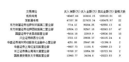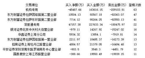 表四、本周卖出金额前十的席位