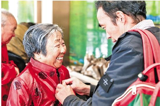 为金婚父母披红衣