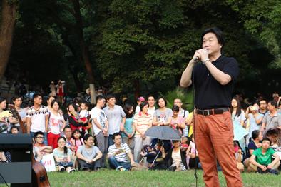 2015年毕业季,李炜教授在中山大学草地音乐会上为学生演唱。