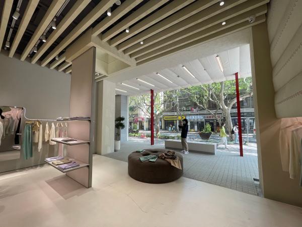 巨鹿路上,“JULU758园区”入口处“C位”的一排落地玻璃窗内,是近年来势头强劲的本土服饰品牌“小着XIAOZHUO”的高级体验店。从2021年8月进驻上海至今,品牌销售额成长了100倍,集聚了一批年轻的忠实消费者。