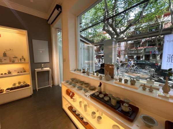 在静安“巨富长”地区,带着“出海”梦的小店还有不少。与“蕾虎”男装店一街之隔的雅瓷,在巨鹿路上耕耘了13年。店内最知名的产品就是汝窑,一款包含“温良恭俭让”元素的汝窑五君子系列茶酒具,更是吸引了在南京西路上的恒隆广场、嘉里中心开店的国际大牌前来定制伴手礼。