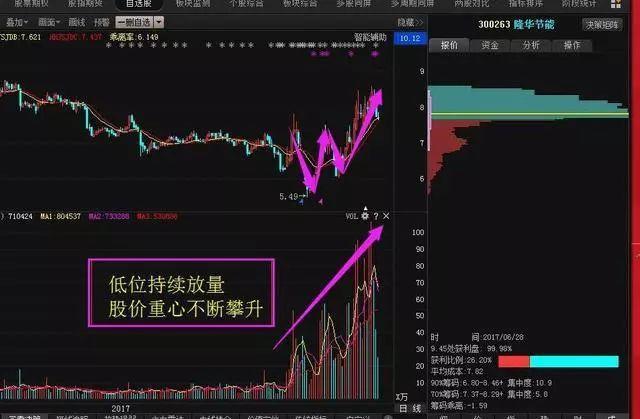 低位放量是好事,通常是资金介入吸筹,主力试盘的迹象,看抛压的大小,后期上涨概率大,拿最近的隆华节能举例,我们可以看到当时关注到这票就是因为股价已经从11块跌倒5块钱,在5块钱附近成交量开始一路放大,在这个低位是很典型的主力资金开始介入,要不然散户是没有能力有这么大的成交量,所以我们看到股价在最近重心不断上移波段收益也是非常不错。
