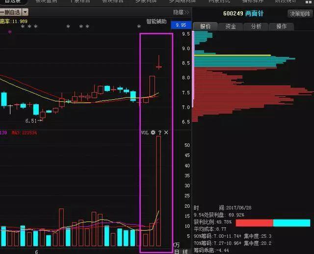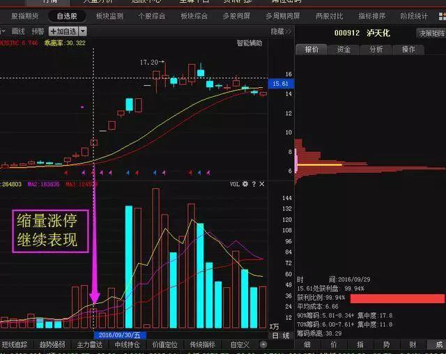 这是A股的特色,我们都说放量上涨缩量调整健康,但是2种极端我们是要注意的,跌停我就不多说基本不会买,主要说缩量涨停,去年泸天化操作的案例9月30号这一天股价在前一天涨停后继续涨停并且表现出缩量涨停的强势形态,缩量涨停就是卖出的人少,持仓的人都十分惜筹,所以在下一个交易日果断集合竞价挂涨停买入,当时也是有朋友连续收获几个涨停板,像昨天缩量涨停的两面针今天也是高开表现还不错。