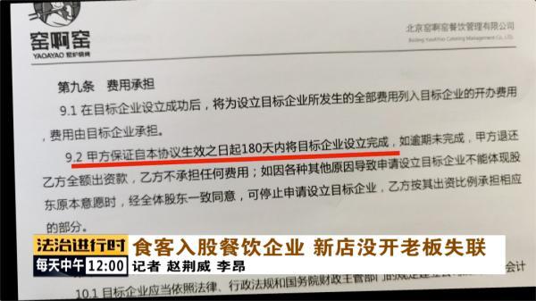 赵先生告诉记者,合同中有一条明确规定,自本协议生效之日起180天内将目标企业建设完成,如预期未完成,甲方退还乙方全部出资款,乙方不需承担任何费用。可如今,股东们不但没见到退款,连个合理的解释都没收到。
