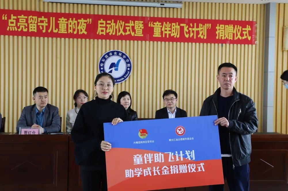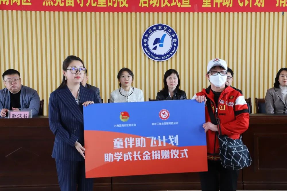 4月13日下午,省志基会依托“家庭志愿基金”开发设计的“童伴助飞计划”捐赠仪式在哈尔滨农垦中学举行,这是项目落户南岗区后的首批捐赠,据悉,这也是省志基会“家庭志愿基金”首次以“组团”方式对接的长期志愿资助行动。