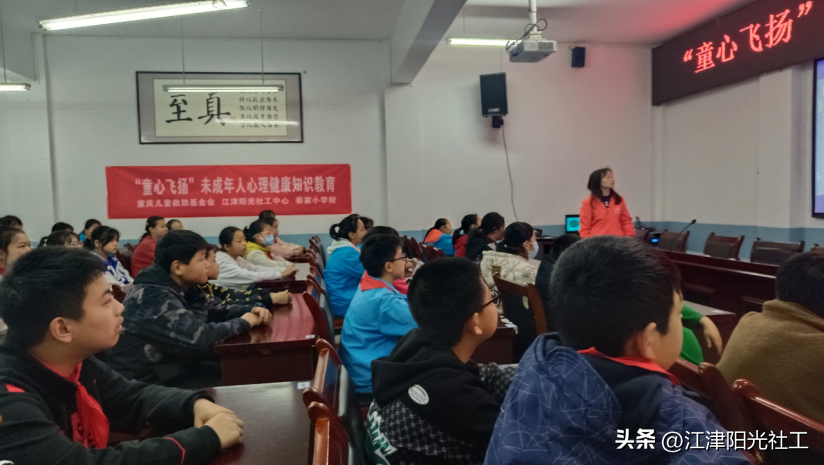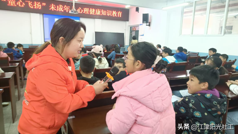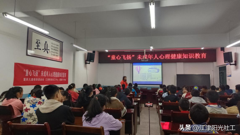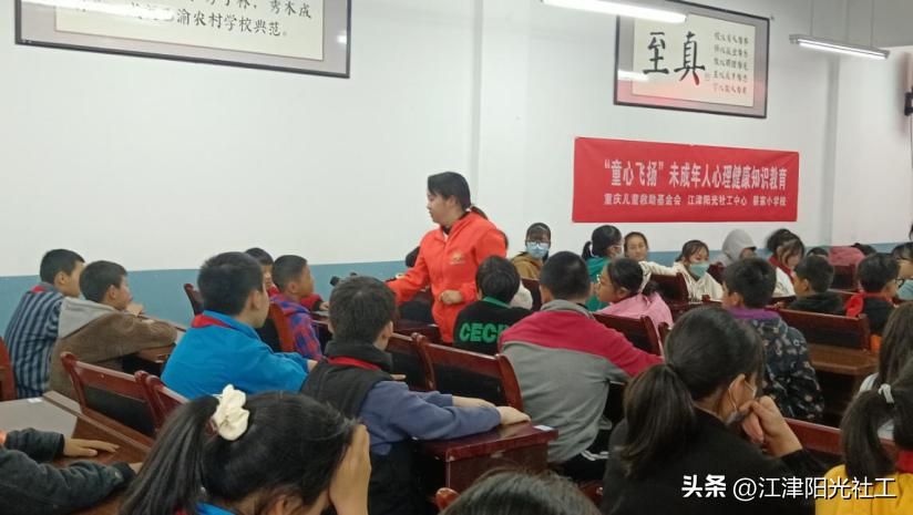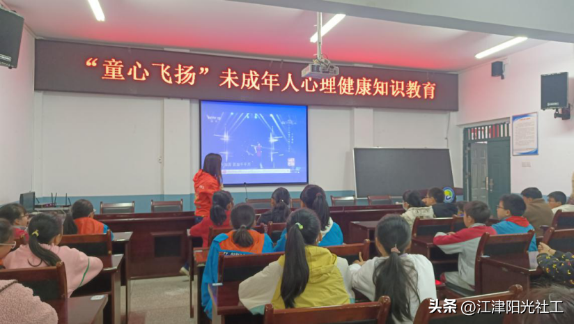 为了增强孩子们的心理素质,让孩子学会直视成长过程中的不良情绪,2023年3月31日,在重庆儿童救助基金会的支持下,江津阳光社工中心在江津区蔡家小学校开展了“童心飞扬”未成年人心理健康知识教育课程。