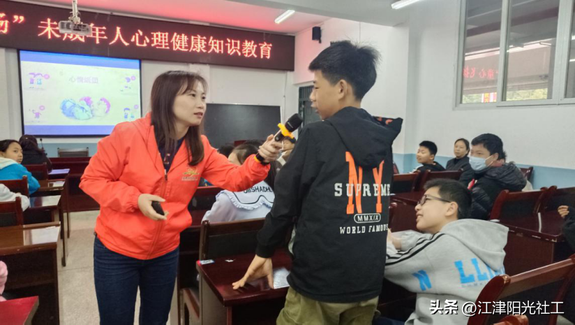 社工进入到蔡家小学,以“我的情绪我做主”为主题,给6年级5个班的同学们讲解如何面对不同的情绪,帮助孩子们处理生活和学习中出现的不良情绪。